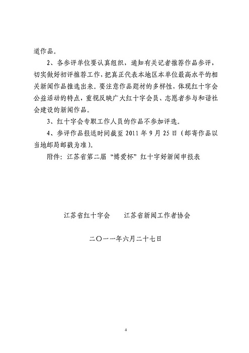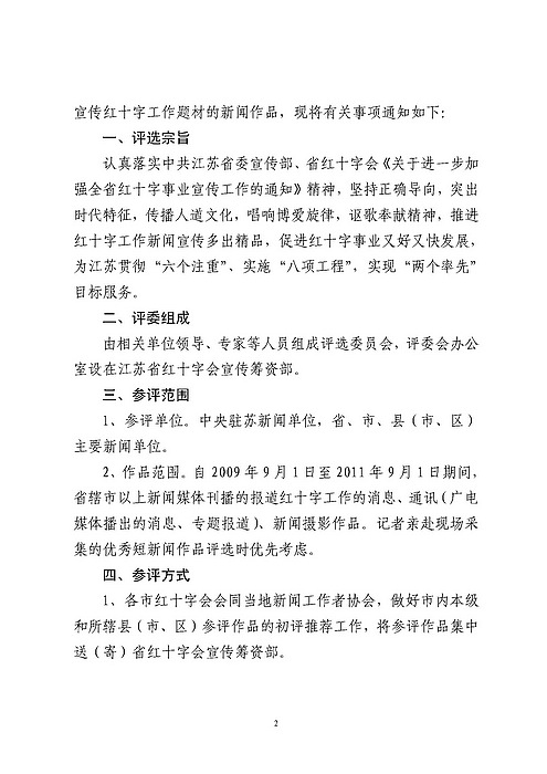 关于举办江苏省第二届“博爱杯”红十字好新闻评选的通知