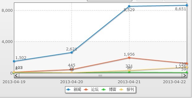 截止到今日(4月22日)中午,相关网络新闻已超过8600篇,相关微博已超过14万条。数据显示,此话题相关舆情热度呈现持续增长态势,其后势发展值得相关部门密切关注。