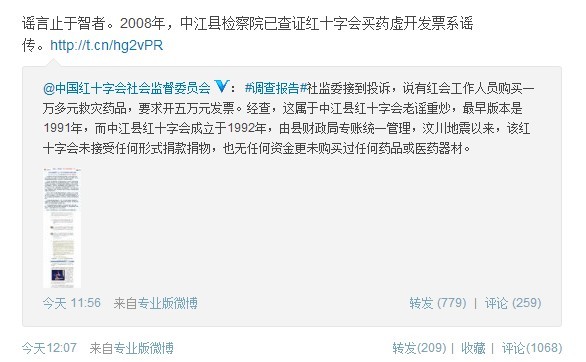 回应红十字会买药虚开发票谣言
