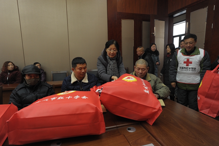 1月30日至2月1日,盐城市红十字会党组书记、常务副会长乔静等领导分别带领市红十字会工作人员和红十字志愿者,先后到亭湖区五星、文峰、大洋、先锋、毓龙等5个街道,看望慰问社区100户困难家庭,向每户送去500元慰问金和一只红十字大礼包。