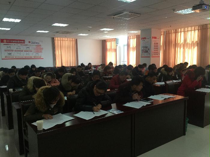 授课完毕对全体学员进行了理论知识测试,随后所有学员来到操作训练室分小组反复练习,练习结束后进行心肺复苏术及创伤救护四项技能的操作考核。