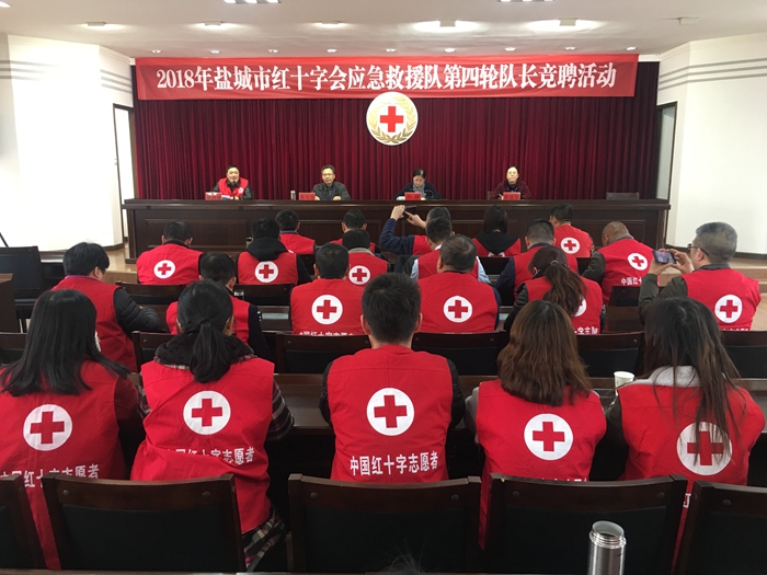 3月11日下午,盐城市红十字会在三楼会议室开展应急救援队第四轮队长、副队长公开竞聘活动, 4名竞聘者进行竞职演讲,35名志愿者现场投票,推荐队伍“领头人”。市红十字会党组书记、常务副会长乔静出席活动并讲话。