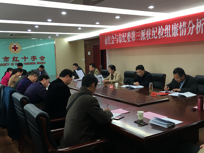 3月28日下午,盐城市红十字会与市纪委派驻纪检组召开廉情分析对接会。盐城市纪委第三派驻纪检组组长周为勇、副组长陈必金、市红十字会领导班子成员、机关全体工作人员、直属单位负责人参加了会议。