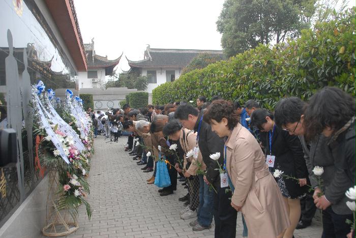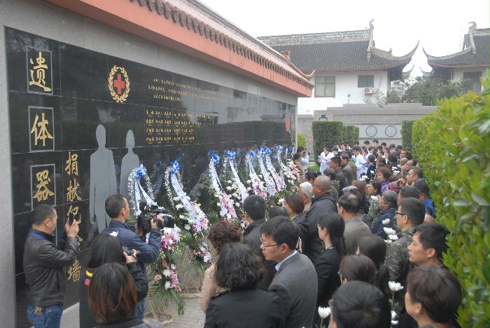 南通市红十字会、市委党史办、南通市造血干细胞捐献工作服务中心、南通大学医学院、通大附院眼科、南通大学红十字会、海门市红十字会、启东市红十字会、崇川区红十字会分别敬献了花篮。各单位领导上前整理挽联,并与捐献者家属亲切握手慰问。