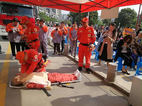 一是与联合其他相关单位在区政府广场开展防灾减灾主的宣传活动,向市民普及防灾减灾知识,提高应急避灾能力。海陵区红十字会以宣传展板、资料发放、现场咨询等方式,向广大市民进行了自救互救常识的科普宣传。为突出红十字会工作特色,红十字志愿者还进行了心肺复苏、创伤包扎等救护技能的讲解。
