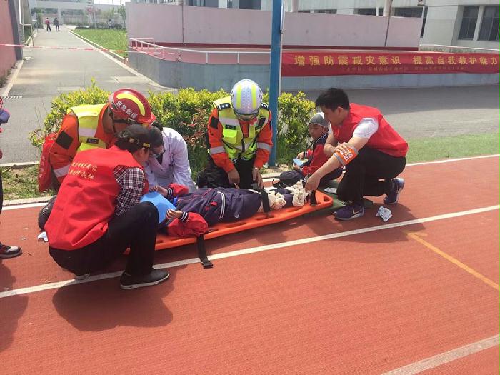 5月11日上午9:50分,靖江市红十字会走进市实验学校天水分校,对全校1300多名师生按照既定的“防震应急疏散演练预案”进行逃生演练。整个过程分“应急避震”和“紧急疏散”两个方面。随着演练警报的第一次拉响,同学们在老师的带领下,用书包护住头和胸,就近或蹲或躲在课桌下,以避开地震开始时的强烈震动。随着疏散警报信号的长鸣,广播响起了“立即疏散”的口令,只见同学们双手抱头,按照事先设定的逃生路线,迅速而有序地撤离到操场的安全开阔位置。清点人数时发现三名学生“被困”,市红十字应急救援队迅速跑向教学楼搜寻、营救被困人员,并为“伤员”包扎救护。通过演练活动,进一步增强了全体师生的防震安全意识,真正掌握在地震中迅速逃生、自救、互救的基本方法。