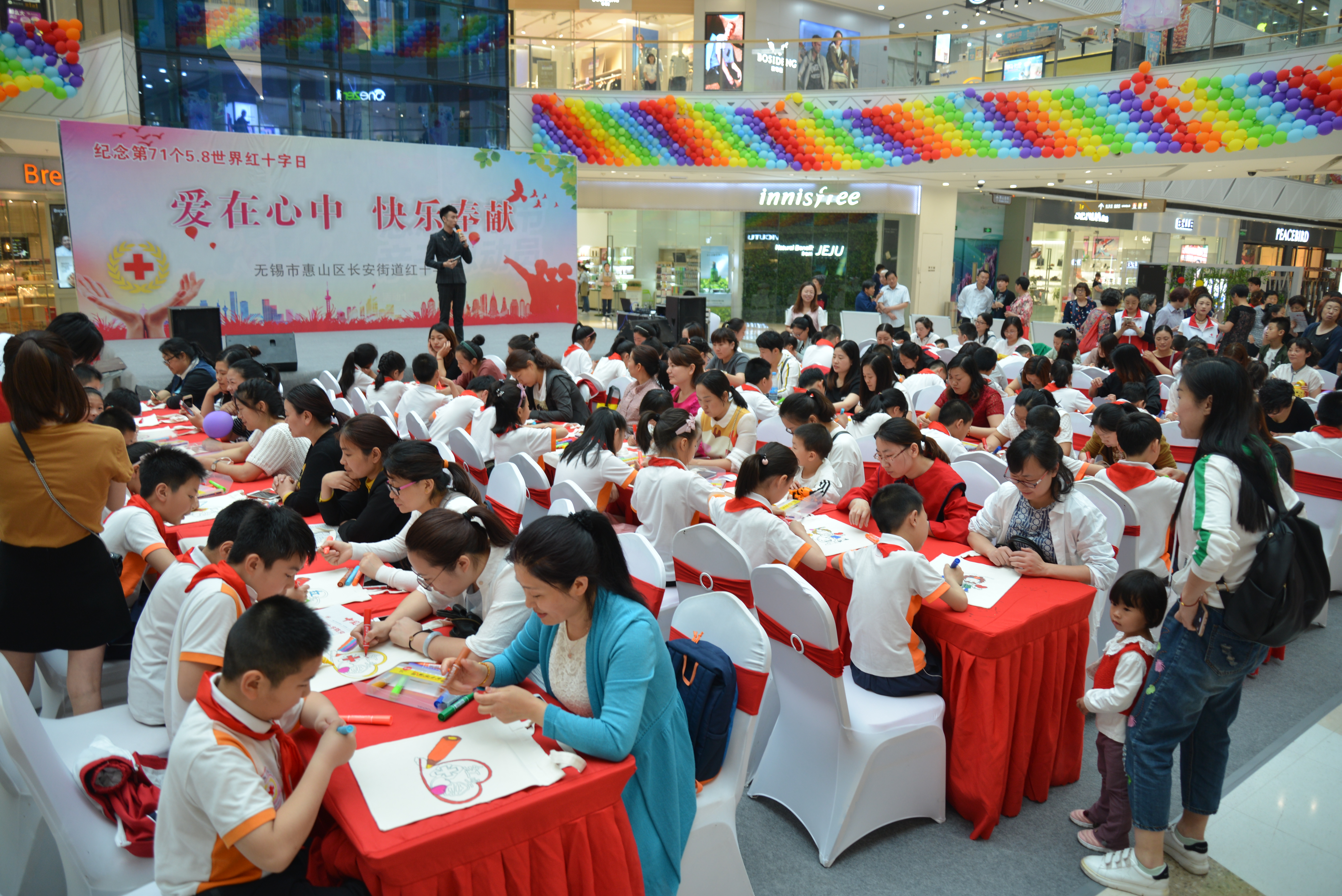 5月12日,无锡市惠山区长安街道红十字会组织50余对爱心家庭来到惠山万达广场,开展长安街道红十字会纪念第71个“5.8”世界红十字日“爱在心中 快乐奉献”主题活动。活动中,全国红十字防灾避险知识竞赛、亲子互动——手绘环保袋、美丽妈妈街头留影、心肺复苏展示等项目一一亮相。