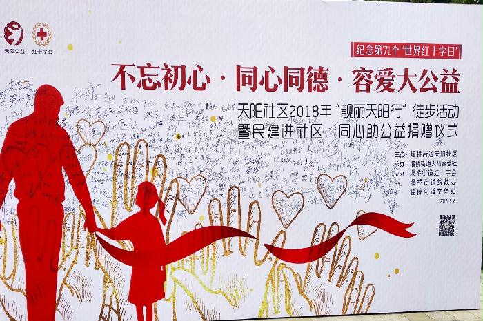 本次活动以纪念世界第71个世界红十字日为主题,积极开展天阳“五心”志愿队服务,宣传“人道、奉献、博爱”精神,推进统战、民建、社区联动共建,促进“民建进社区、同心助公益”。
