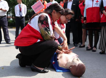 结合“5.12”全国防灾减灾日等活动,在社区文体中心开展应急救助知识宣传,宣传防火防震应急疏散逃生知识。社区红十字志愿者组织社区老年居民进行紧急救护知识技能培训,内容包括急救知识心肺复苏、包扎止血等,并指导居民进行互动演示。