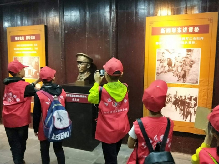 5月19日下午,泰州市蒋垛中心小学红十字会组织部分红领巾志愿服务队员参观了新四军黄桥战役纪念馆。