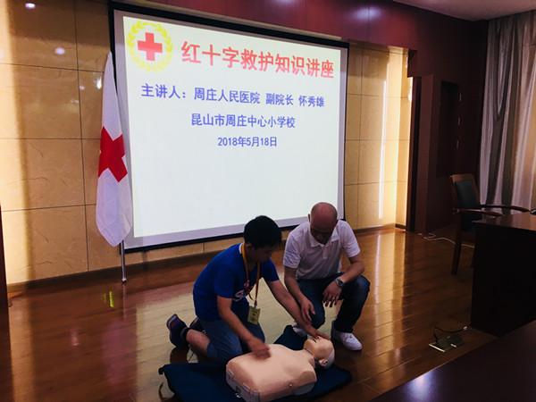 为进一步普及急救知识,守护生命安全,提高学生自我防护意识和自救互救能力,5月18日,昆山市周庄小学于邀请周庄人民医院副院长怀秀雄来校开展救护讲座。
