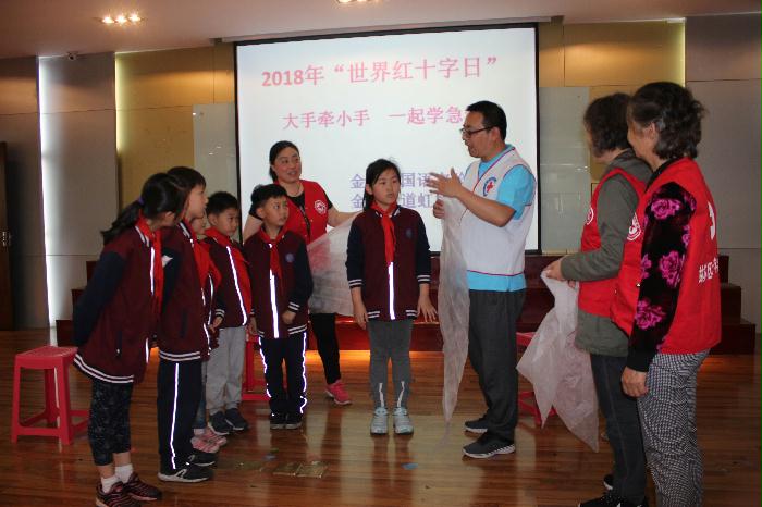 5月8日上午,苏州市金阊街道虹桥社区联合金阊外国语学校举办了“大手牵小手,一起学急救”活动。