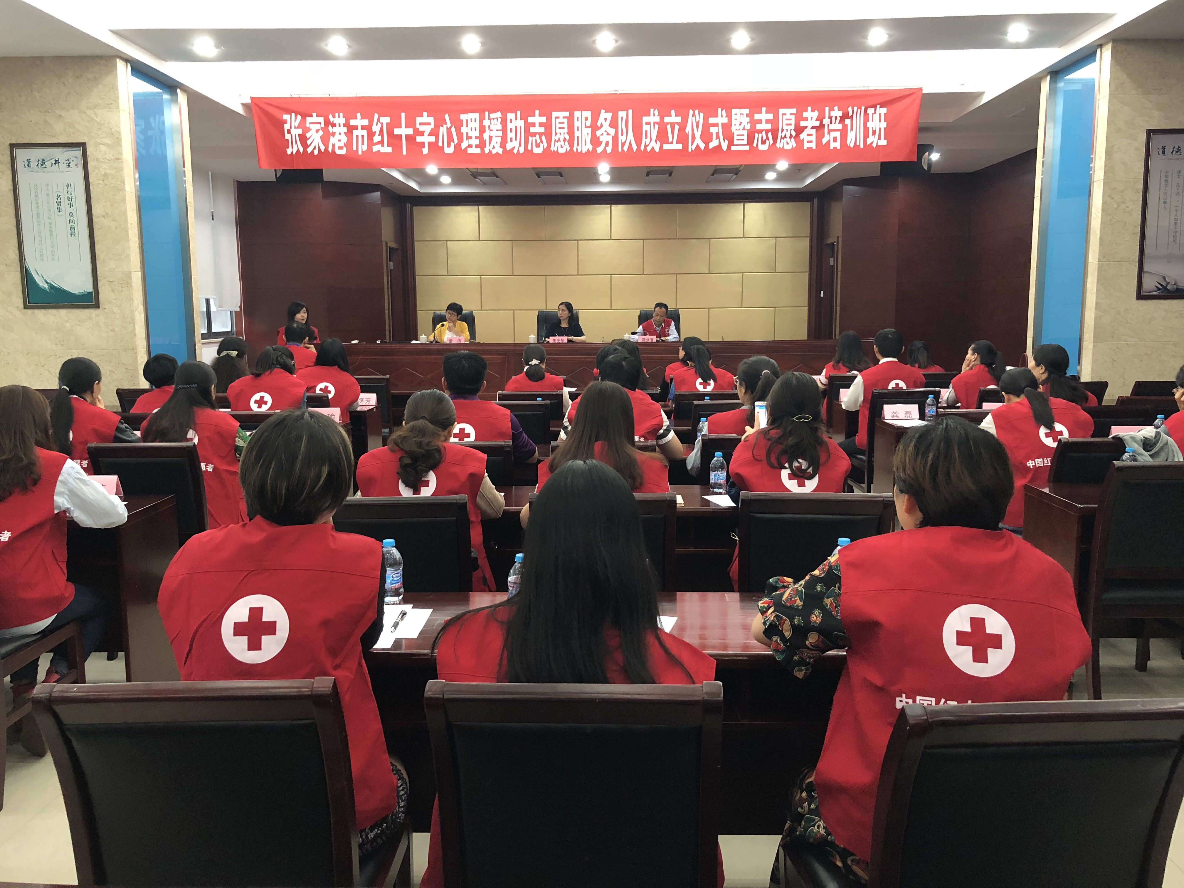 5月25日下午,红十字心理援助志愿服务队成立仪式暨志愿者培训会议在张家港市公共卫生中心顺利召开,市红十字会副会长朱光华、秘书长董洁,红十字志愿服务总队队长周继清出席此次活动