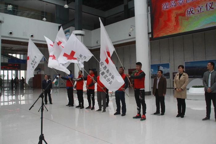 5月7日,连云港市首家景区红十字救护站在连云区连岛游客中心成立,市红十字会常务副会长胡英浦、连云区副区长许威扬出席活动现场,共同为景区红十字救护站揭牌,并为6支红十字救护队以及志愿服务队授旗。