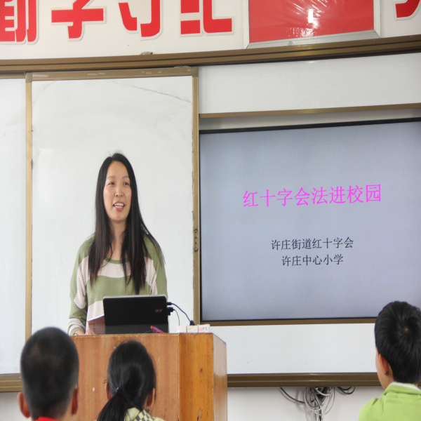 当志愿者问道:“同学们听说过红十字会法吗?”的时候,学生们纷纷摇头。志愿者说:“没关系,现在姐姐就给你们讲讲红十字会法。”学生们立刻一个个神情专注地听着宣讲。