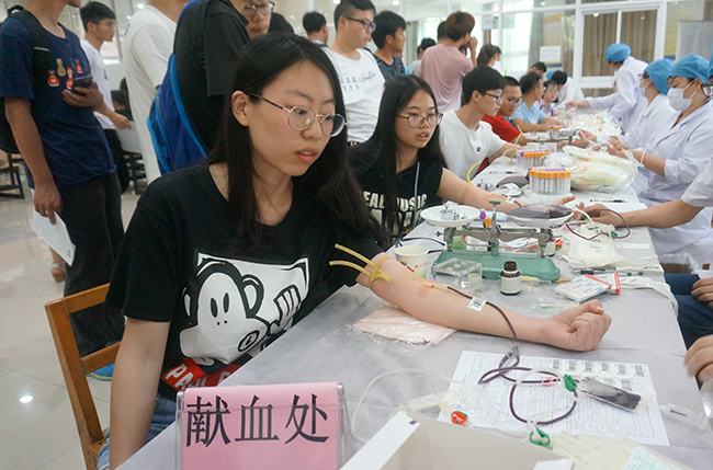 6月13日,常熟理工学院应急血库成立,142名大学生现场用殷殷热血传递青春和爱心温度,以此来纪念2018年第十五个“世界献血者日”。
