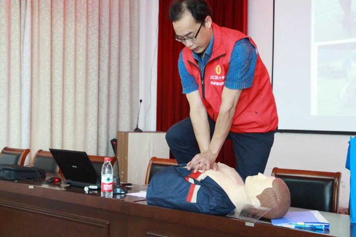 暑期是溺水的高发季节,“当心跳呼吸停止时,黄金抢救时间只有4至6分钟,如不及时施救,每耽误一分钟,死亡率和致残率就会直线上升。”葛老师着重于溺水后的紧急处理措施详细讲解了心肺复苏的方法和技巧等。