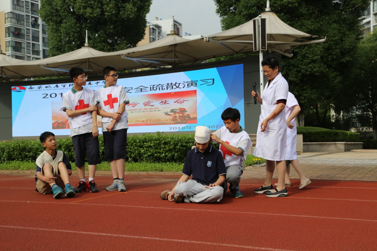 5月30日,南京市鼓楼区红十字会开展红十字青少年消防演练。南京晓庄学院附属中学800名师生上午在教室观看《消防疏散》视频和急救知识培训,下午参加消防演练。演练模拟火灾现场,进行逃生疏散,红十字志愿者为“受伤学生”进行紧急处理,消防演练珍惜生命取得圆满成功。