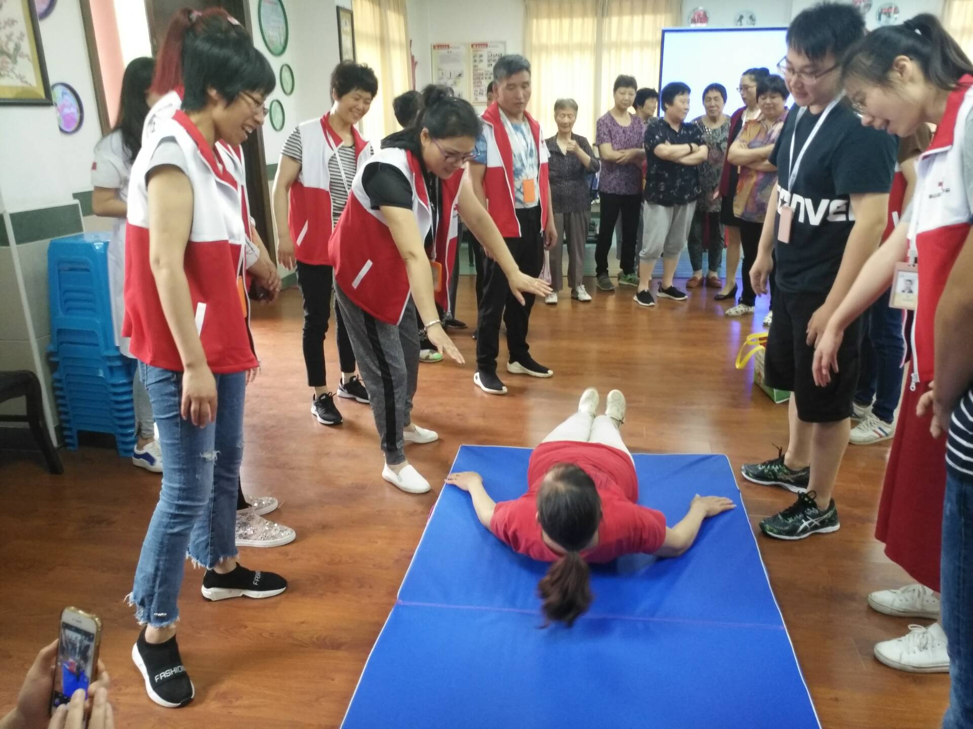 5月30日,无锡钱桥社区红十字会组织志愿者、“耘林乐老”培训中心老师、耘林康复医院专业康复师和太湖学院的志愿者们组织社区老人学习“如何正确摔倒”,并把荷兰先进的快乐养老理念传递给社区的老人们。