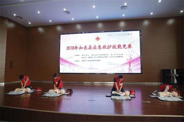 由如东县红十字会、县卫生和计划生育委员会、县人才工作办公室、县总工会、县教育局、县人力资源和社会保障局、县安全生产监督管理局联合举办的“2018年全县应急救护技能竞赛活动”,在如东县救护培训中心进行,来自全县二级以上医疗单位、镇区红十字会、乡镇卫生院和村卫生室共同组建的17支代表队51名选手参加了竞赛。活动主办单位领导和全县各镇区红十字会、各学校各医院红十字会负责人以及部分红十字志愿者近200人参加了活动。