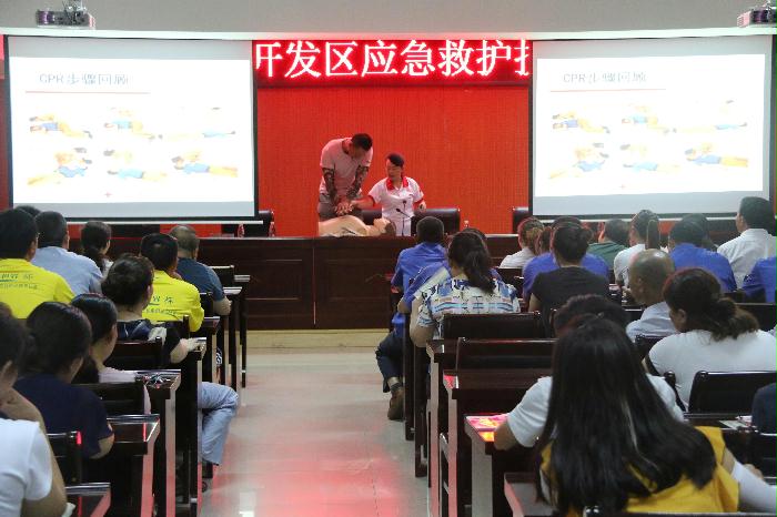 培训过程中,红十字救护培训讲师陈萍根据开发区企业员工的日常生产生活特性,重点对心肺复苏、创伤救护(止血、包扎、固定、搬运)等相关救护知识进行了讲解。老师精心授课,语言风趣幽默,极大的调动了职工的学习积极性。