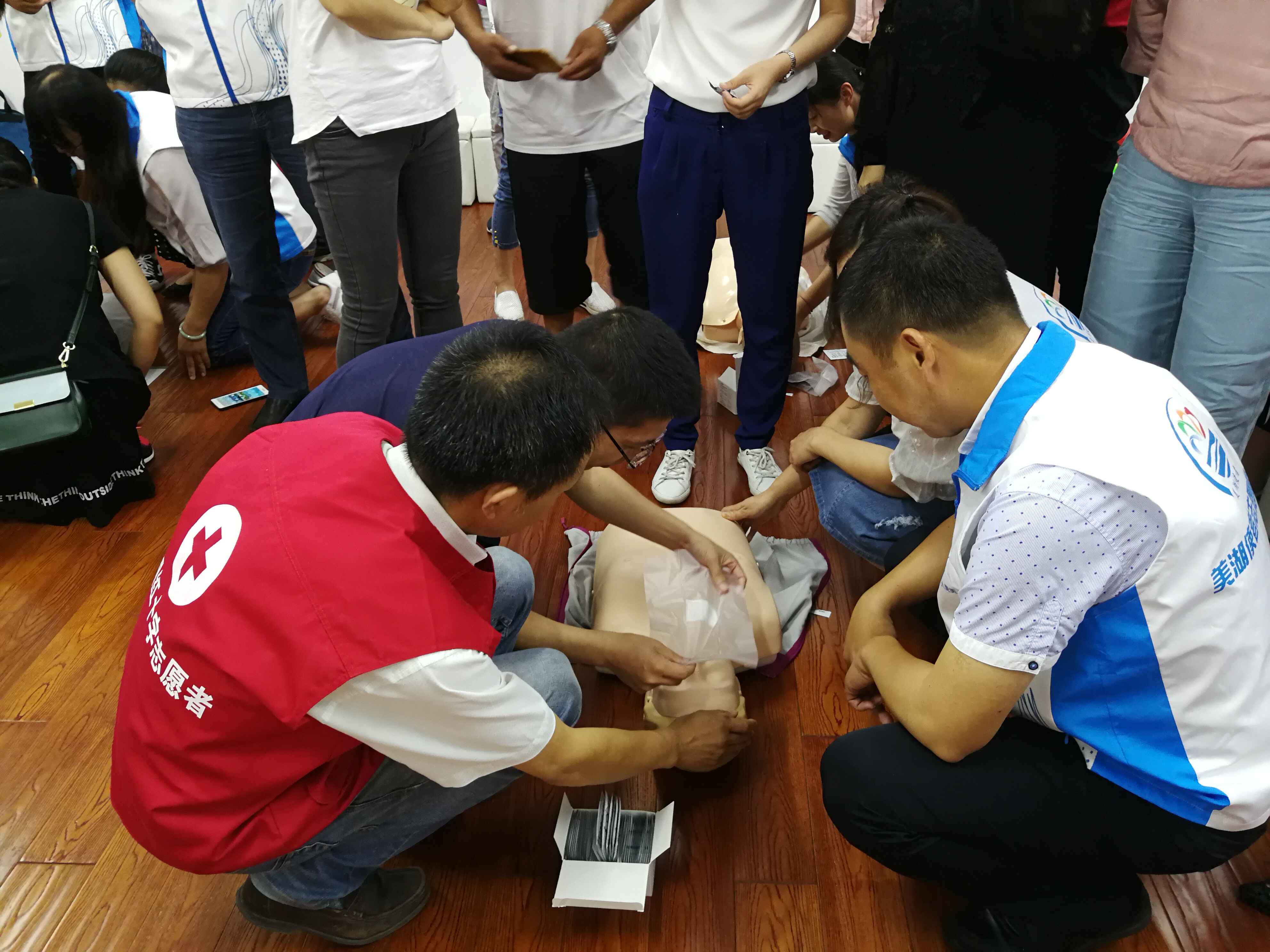 通过热烈的互动问答、逼真的模拟演示、手把手的操作指导,志愿者们基本掌握了心肺复苏的流程和技术要领,并学到了中暑、溺水、气道异物梗阻等突发事件的现场急救知识。
