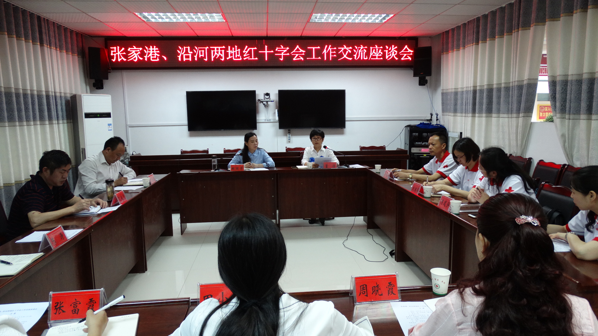 5月30日上午,两地红十字会举行了交流座谈。座谈会由沿河县红十字会田丽芳常务副会长主持。田会长介绍了沿河县与张家港市结对帮扶工作开展的情况以及当地红十字会近年来工作的基本情况、当前工作面临的困难,并希望今后双方在互助互帮精神宣传、留守老人养老、留守女童健康、自救互救知识普及、志愿服务、捐髓工作等方面进行深入交流。