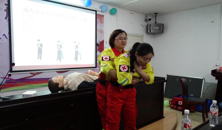 首先由周继清老师就授课的基本要求作了讲解,然后由陈建弘老师讲授心肺复苏的操作方法,之后刘丽华老师就AED机的操作方法,气道异物梗阻的处理作了讲授,最后由陆黎丽老师讲述了创伤救护的四项技术。