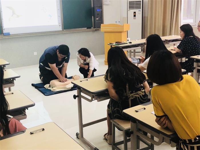 本次“红十字应急救护培训进校园”活动,张老师用生动易懂的实例、风趣幽默的语言讲解了心肺复苏、气道异物梗阻等救护知识,以理论知识与实际操作相结合的形式进行,并利用模拟人医用模型,现场进行急救救护演示。老师们分别上台现场模拟操作,亲身体验了救护技巧。进一步巩固了所学知识,掌握了现场急救的基本技能,为今后更好地救助突发事件现场的伤者积累了宝贵经验。培训深入浅出,通俗易懂,收到了良好的效果。
