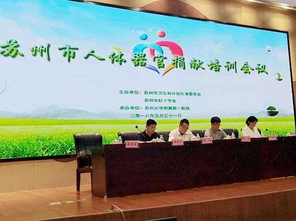 5月31日,由苏州市卫计委、苏州市红十字会主办,苏大附一院承办的苏州市人体器官捐献工作培训班在苏大附一院举行。省卫计委医政处副处长高鹏,省红十字会赈济救护部副调研员邵亮,市卫计委党组书记、主任谭伟良,市红十字会党组书记、常务副会长严晓凤,苏大附一院院长侯建全等领导出席并致辞。